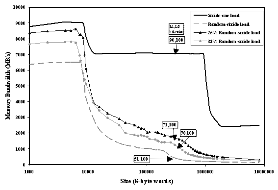 percentages of random memory access for a Compaq Alphaserver (Lemieux